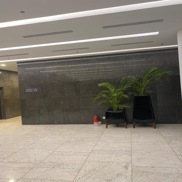 The office buildings’ form is composed of a cantilevered 4-story building elevated on a clear see-through glass base, enhancing the visual connectivity and accessibility with the central piazza. The piazza is designed to encourage the concept of an informal working environment within the professional setting
